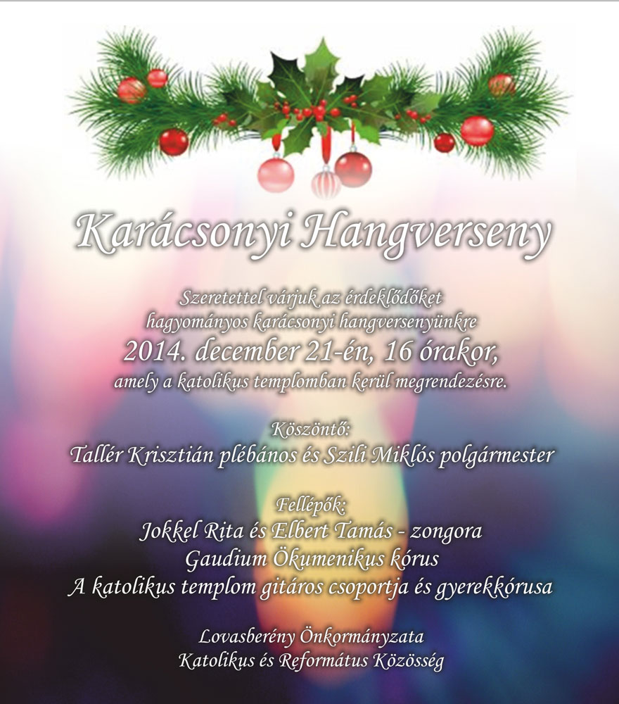Karácsonyi hangverseny 2014. december 21-én 16 órakor a katolikus templomban. Részletekért kattintson a képre!