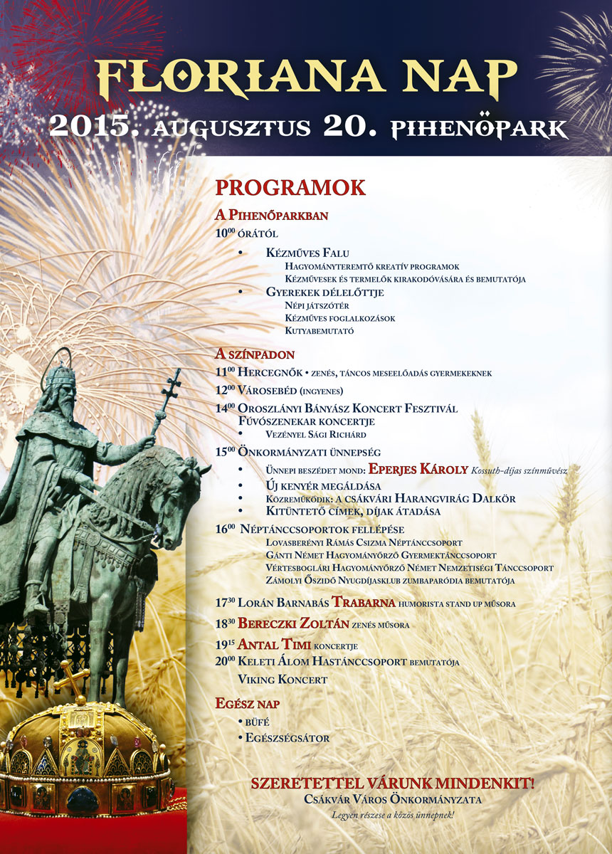 2015 augusztus 20-án Floriana Nap Csákváron. Részletekért kattintson a képre!