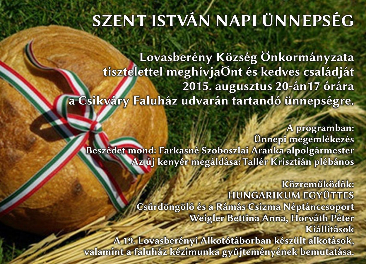 2015. augusztus 20. SZENT ISTVÁN NAPI ÜNNEPSÉG2015. augusztus 20-án17 órakor a Csikváry Faluház udvarán. Részletekért kattintson a képre!