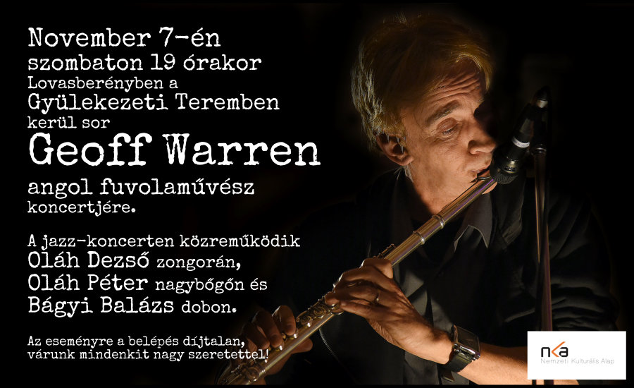 Jazz-koncert Geoff Warren angol fuvolaművész koncertje Lovasberényben aGyülekezeti Teremben. Részletekért kattintson a képre!